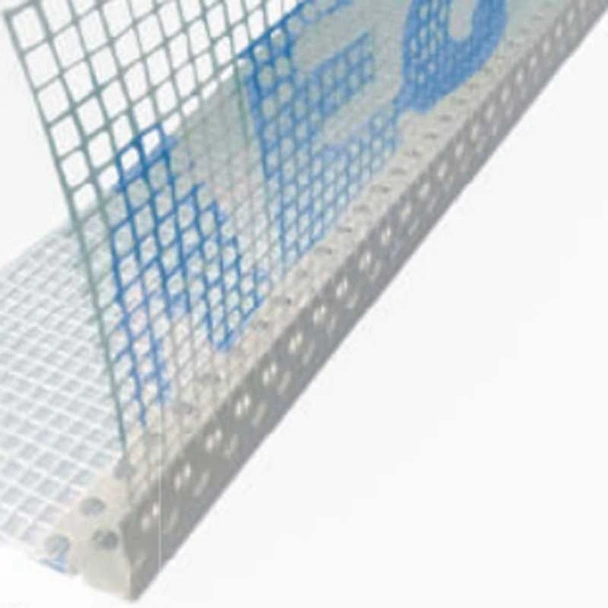 PVC ъгъл с широка мрежа с нишка и бранд Vestal за армиране на ъгли по фасадата, по отвори на врати и прозорци, балкони и други фасадни завършващи участъци.