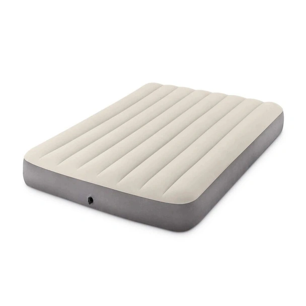 Надуваемият дюшек INTEX с размери 137х191х25 см е практично и удобно решение за сън у дома, при гости или по време на къмпинг. Изработен с модерната Fiber-Tech технология, този дюшек предлага отлична подкрепа на тялото и дълготраен комфорт при всяко използване. Вградената система от хиляди устойчиви полиестерни влакна осигурява стабилна структура и предотвратява деформации при натиск. Благодарение на специалния 2-в-1 клапан с широки отвори, надуването и спадането се извършват бързо и без усилие – с ръчна или електрическа помпа.