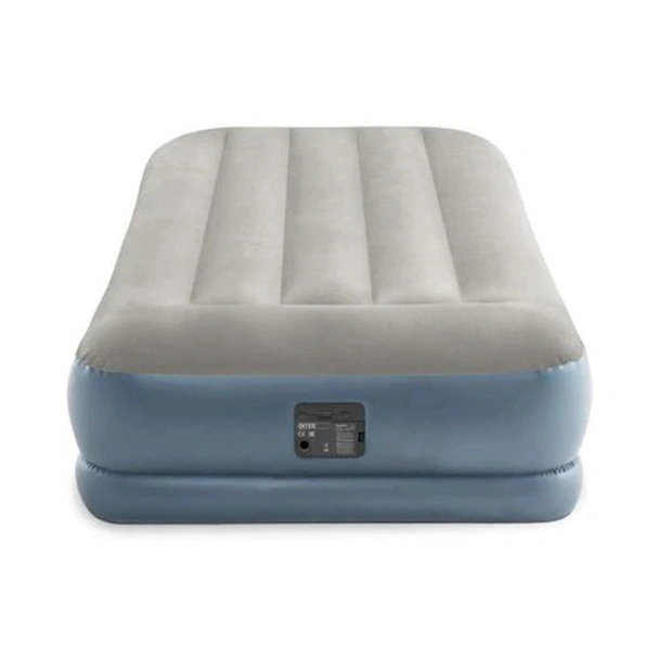 Надуваем дюшек Intex Pillow Rest Mid-Rise Airbed 99х191х30см е подходящ както за къмпинг, така и като допълнително легло вкъщи.Той е компактен и лесен за съхранение и транспортиране.Разполага с вградена електрическа помпа, която го надува за 1 минута и 45 секунди. Fiber-Tech технологията, меката кадифена повърхност и вградената възглавничка осигуряват стабилност и комфорт за здравословен сън и почивка.