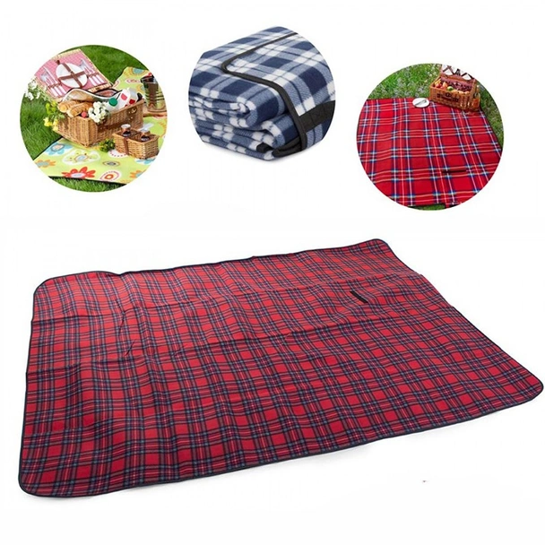 Поларена постелка за пикник с водоустойчива гумирана подложка от долната страна.