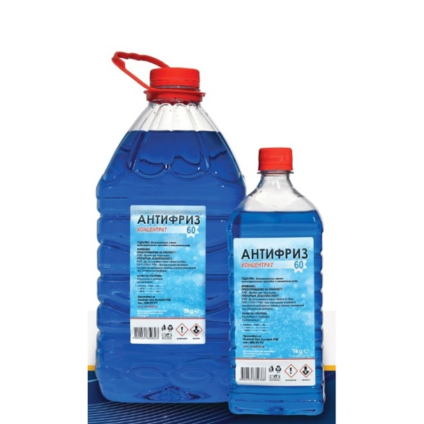 Антифриз концентрат в син цвят, предпазващ охладителната система на автомобилите от замръзване и корозия.