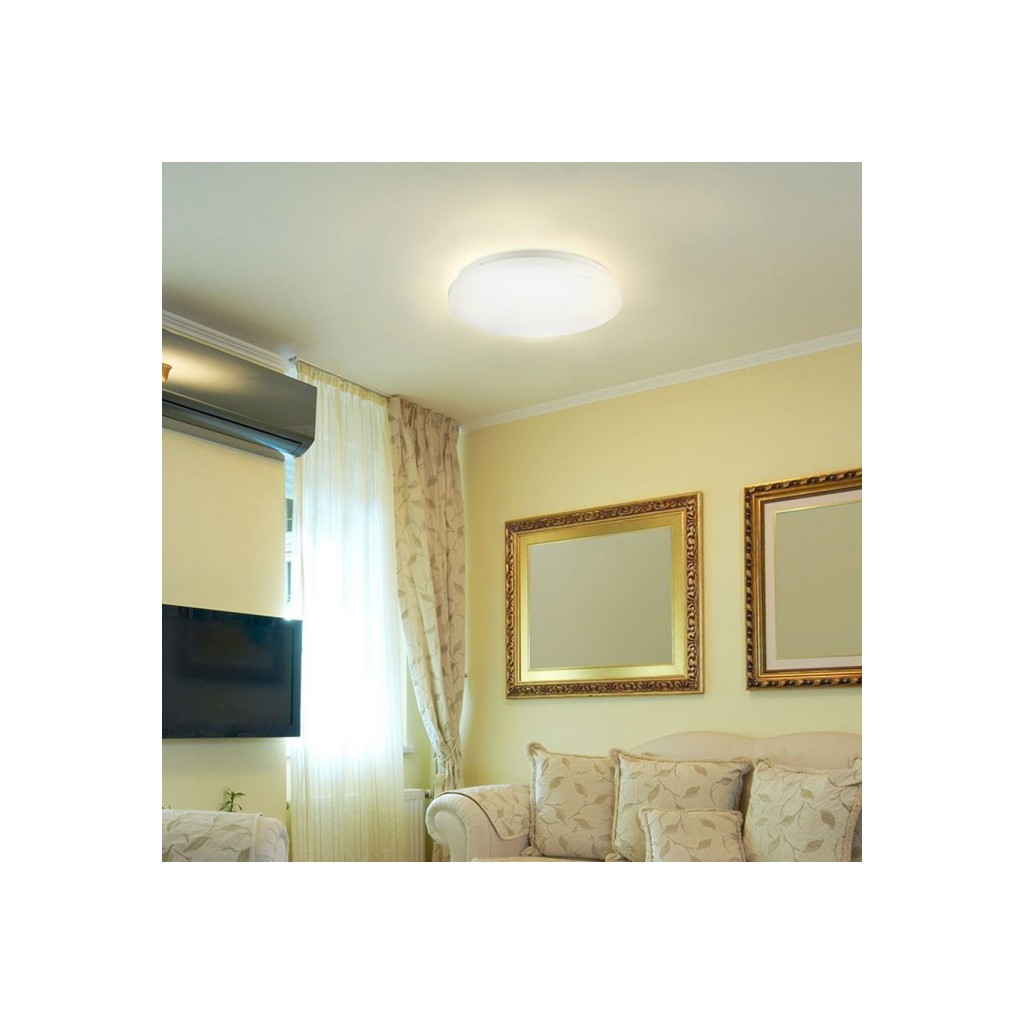 LED плафонът предлага балансирано и равномерно разпределение на светлината, което го прави подходящ за различни интериорни пространства. Матираният дифузер предпазва от заслепяване и създава приятна атмосфера, която не натоварва очите. Висококачествените светодиодни чипове гарантират стабилна светлина без трептене и без вредно UV излъчване, което е особено важно за помещения, в които прекарвате дълго време.