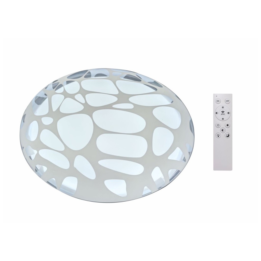 Плафонът осигурява светлинен поток от 5440 lm с широк ъгъл на осветяване 120°, което гарантира равномерна светлина и комфорт за очите. Вградените SMD 2835 светодиоди осигуряват дълъг живот и минимална консумация на електроенергия. Димируемата функция, управлявана чрез дистанционното, позволява да регулирате яркостта и да адаптирате осветлението според различни ситуации – от работна атмосфера до уютна вечерна обстановка.