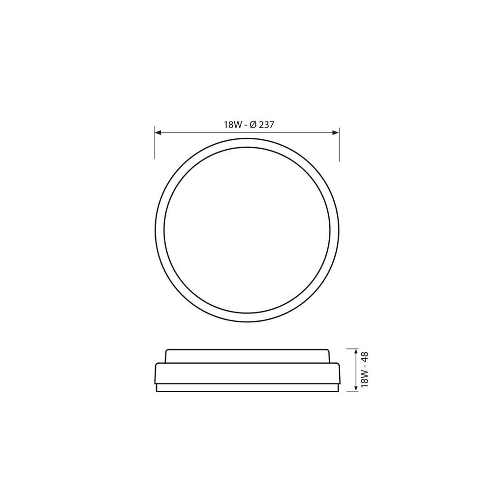 LED плафонът е изработен от термопластмаса, в бял цвят, с диаметър 23.7 см и височина 4.8 см.