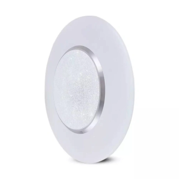 LED плафон 3в1 на марката V-TAC с максимална мощност 60 W, проектиран да превключва между три цвята с помощта на дистанционно управление, с което може да се изключи светлинaта, да се променят цветовете, да се димира светлинaта и други.