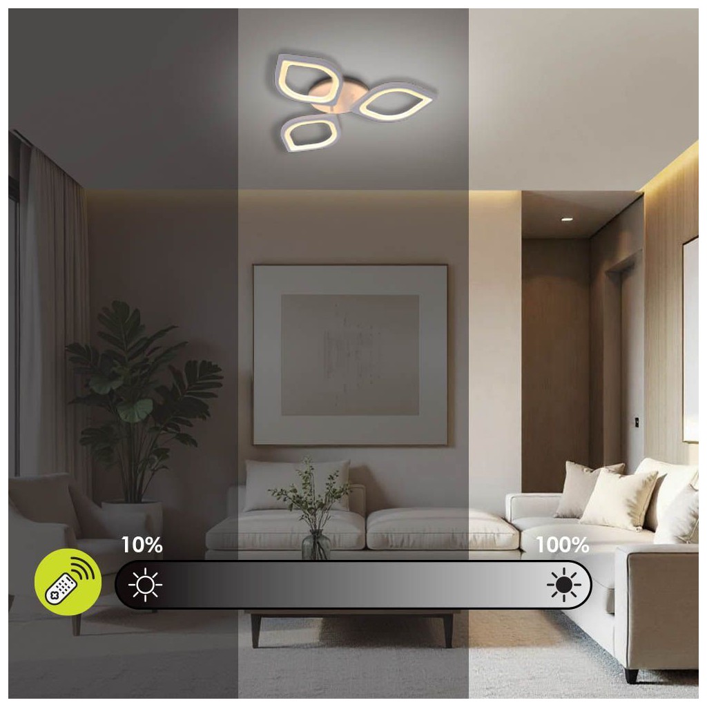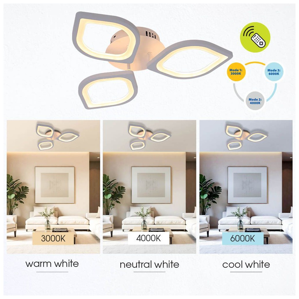 LED плафонът Viki предлага широк диапазон на цветна температура от 3000 до 6000 K, което ви позволява лесно да избирате между топла, неутрална и студена светлина. С едно натискане на бутона на дистанционното можете да променяте интензитета и нюанса на светлината според часа от деня или настроението си. Това го превръща в изключително практично решение за всекидневни, спални, детски стаи и домашни офиси.