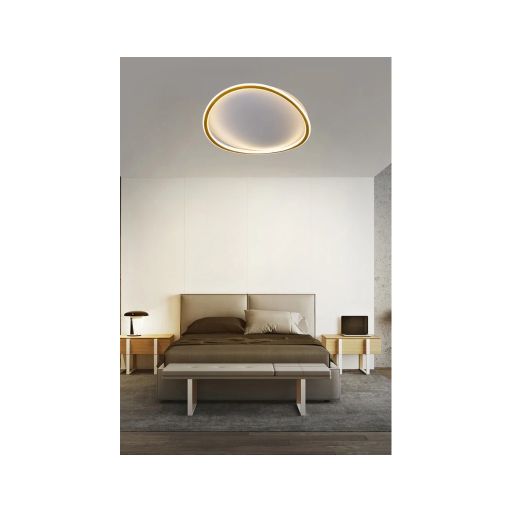 Плафон Перла впечатлява с изчистена, модерна форма и стилни златисти акценти. Акрилният дифузер разпределя светлината равномерно, осигурявайки комфортно осветление без отблясъци. Светодиодната технология гарантира енергийна ефективност, дълъг живот и минимална консумация на електроенергия, като същевременно осигурява висок светлинен поток от 3960 лумена.