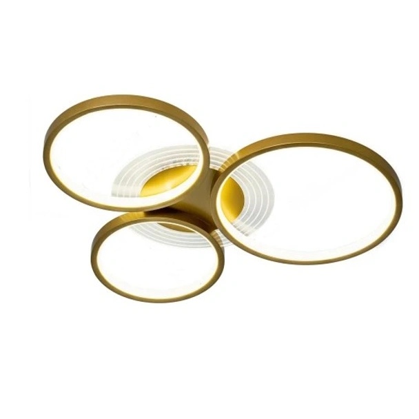 Плафон Пръстени DREAM LIGHTS впечатлява със своя модерен геометричен дизайн и луксозен златист завършек. LED източникът осигурява висока осветеност с меко, разсеяно сияние, което създава приятна атмосфера в помещенията. Акрилните елементи допринасят за равномерното разпределение на светлината, без отблясъци, като подчертават декоративните пръстени на корпуса.