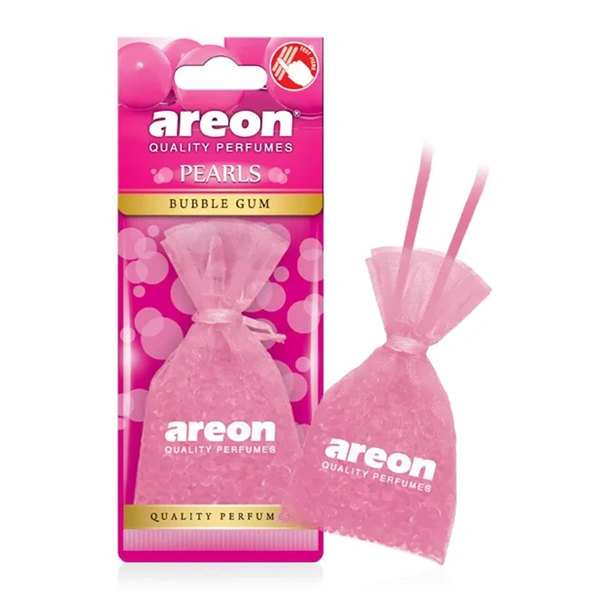 Ароматизатор за кола перли Дъвка на марката AREON с плодов аромат, смесен с нотки гурман и ванилия.