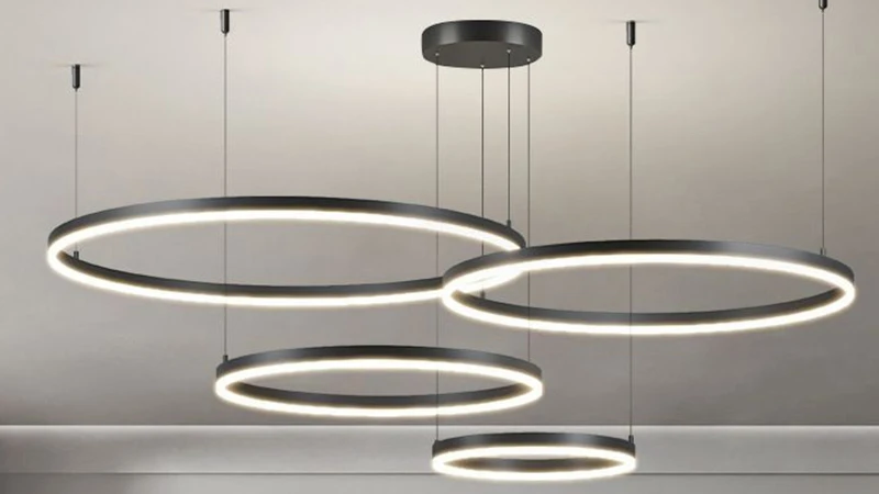 - Модерните полилеи с LED ленти и футуристични форми са идеални за минималистични домове.