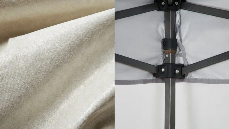 По-високият denier (420D–600D) означава по-голяма здравина. PVC е най-водоустойчив, но по-тежък; PU диша по-добре. Избягвайте евтин PE под 120 g/m² – той се къса след 1–2 сезона. Търсете двойно покритие за 99 % UV защита.