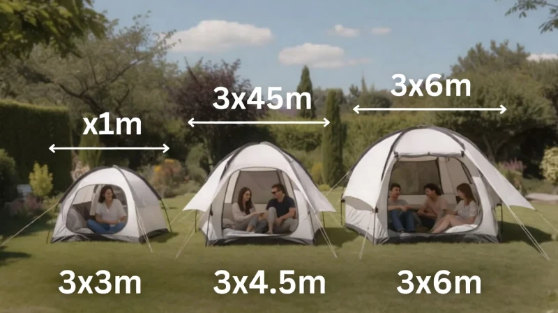 Компактните модели (до 3×3 м) са леки, евтини и лесни за монтаж, но ограничават големи събирания. Големите (над 3×6 м) предлагат повече комфорт и място за допълнителни функции, но са по-тежки и изискват по-солидно закотвяне. Изберете според редовната употреба – семеен вариант или парти.
