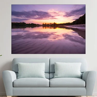 Залез над кей в шведско езеро - картина пано за стена