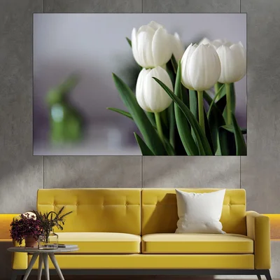 Букет бели лалета - картина пано за стена