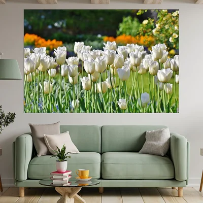 Цъфнали бели лалета - картина пано за стена