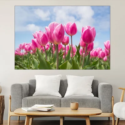 Поле с розови лалета - картина пано за стена
