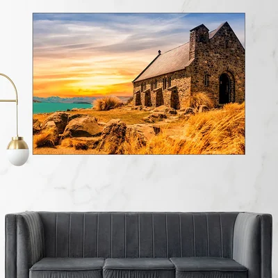Каменна църква край езерото - картина пано за стена