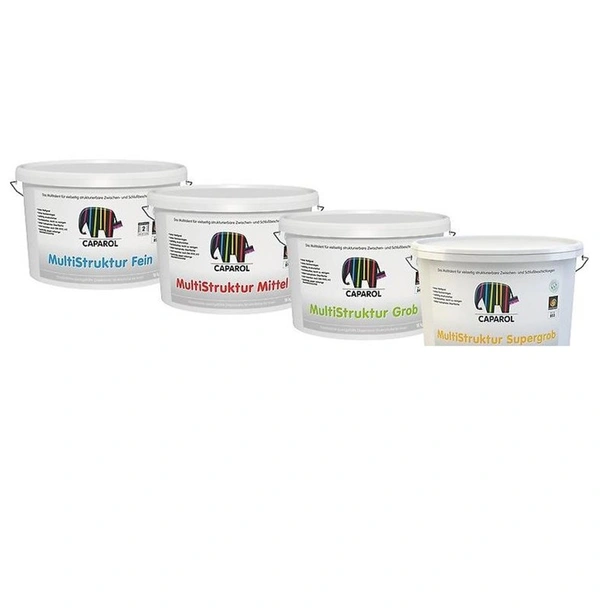 MultiStrukturStyle Mittel на Caparol е професионално решение за постигане на уникални релефни структури в интериора. Тази декоративна мазилка с кварцови пълнители е продукт, готов за употреба, който позволява голяма творческа свобода при оформянето на финишни или междинни покрития. Тя е идеална основа за последващо нанасяне на лазурни бои, перлени или металикови ефекти, които подчертават релефа и придават дълбочина на стените.