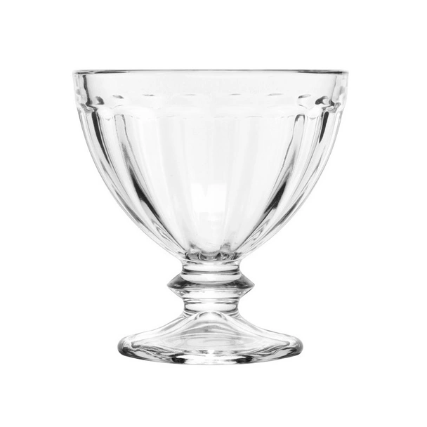 В сравнение с обикновените десертни купички, този модел предлага по-добра стабилност благодарение на широката основа и балансираната форма. Стъклената конструкция е по-устойчива от тънкостенните варианти и същевременно запазва елегантния си външен вид. Универсалният дизайн позволява лесно комбиниране с различни сервизи и прибори.