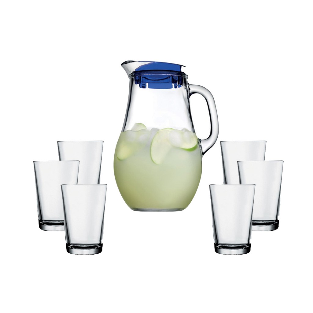 Комплектът от кана с шест чаши е практично и стилно решение за сервиране на студени напитки у дома или на открито. С вместимост на каната 1850 мл и по 200 мл за всяка чаша, той е идеален за сервиране на вода, сок, лимонада, студен чай или коктейли за цялото семейство или гости. Прозрачният дизайн и изчистената форма на съдовете придават елегантност и лесно се вписват във всякакъв интериор, от модерна кухня до традиционна трапезария.