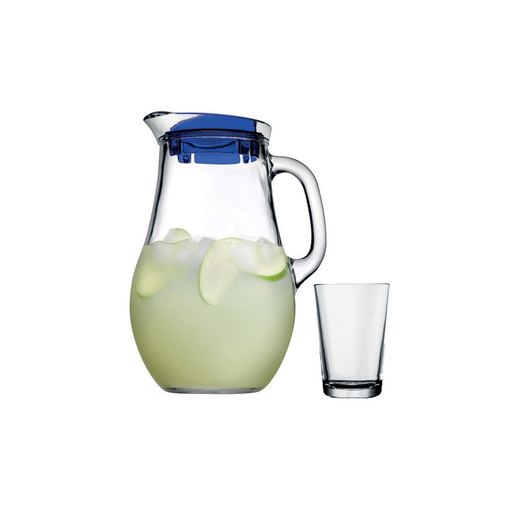 Каната е изработена от дебелостенно прозрачно стъкло, което осигурява здравина и устойчивост на ежедневна употреба. Капакът предпазва напитките от прах и насекоми, което го прави особено подходящ за летни дни и събирания на открито. Ергономичната дръжка и широкият отвор улесняват наливането и пълненето на каната, като намаляват риска от разливане. Чашите следват класическа форма с оптимална вместимост, която гарантира удобство при пиене и приятно усещане в ръката.