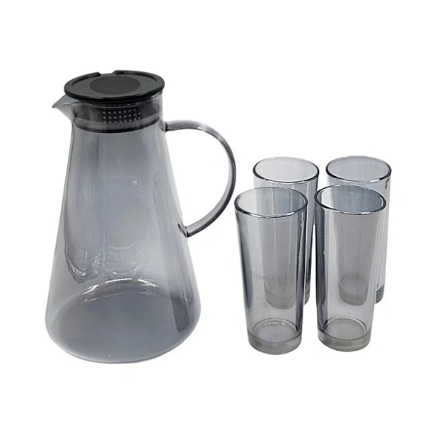 Комплектът кана с чаши в елегантен сив цвят е практично и модерно решение за сервиране на напитки у дома, в офиса или при специални поводи. Съчетавайки функционалност и изчистен дизайн, този сервиз допринася за подредена и стилна визия на масата. Независимо дали поднасяте вода, сок, лимонада или студен чай, комплектът осигурява удобство и красив външен вид, който впечатлява гостите.