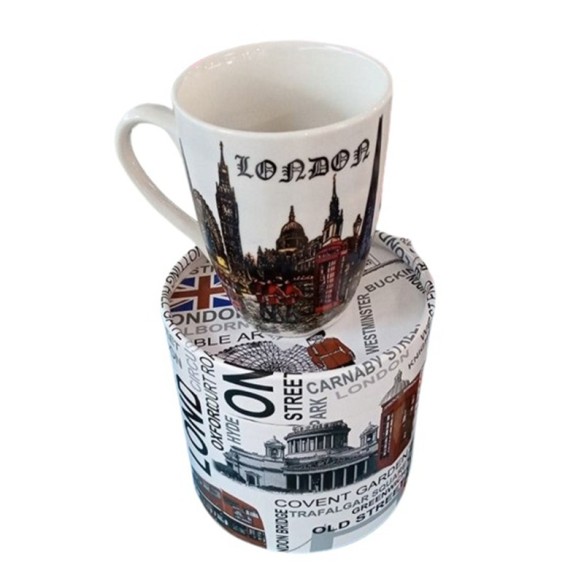 Красива порцеланова чаша за кафе или чай с картинка на Лондонска забележителност и удебелена удобна дръжка.