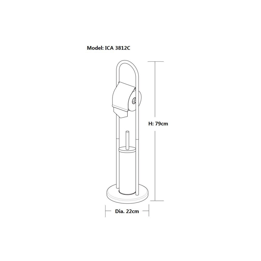 ICA 3812C предлага два основни елемента в един практичен дизайн – четка за тоалетна и държач за тоалетна хартия. Това спестява място и осигурява всичко необходимо на едно място. Височината от 80 см гарантира удобство при използване, а устойчивата основа предотвратява нежелано преместване или преобръщане по време на употреба.