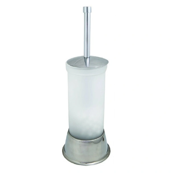WC сетът е изработен от масивен месинг, който е изключително устойчив на корозия и влага, гарантирайки дълготрайна издръжливост. Той е покрит с висококачествено хром-никелово покритие с дебелина над 0,3 µm, което придава огледален блясък и предпазва повърхността от надраскване и потъмняване. Контейнерът за четката е от матирано стъкло, което не само изглежда модерно, но и осигурява дискретно съхранение на четката. Височината от 39 см го прави компактен и лесен за позициониране на пода във всяка баня.