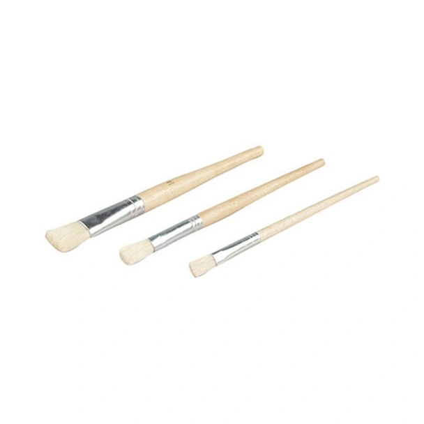 Всяка четка в комплекта е снабдена със здрава дървена дръжка, която осигурява стабилен и удобен захват, необходим за прецизната работа. Дръжките са с впечатляваща дължина (приблизително 27 см), което дава по-голям обхват и по-добра видимост при работа по малки детайли или в труднодостъпни места.