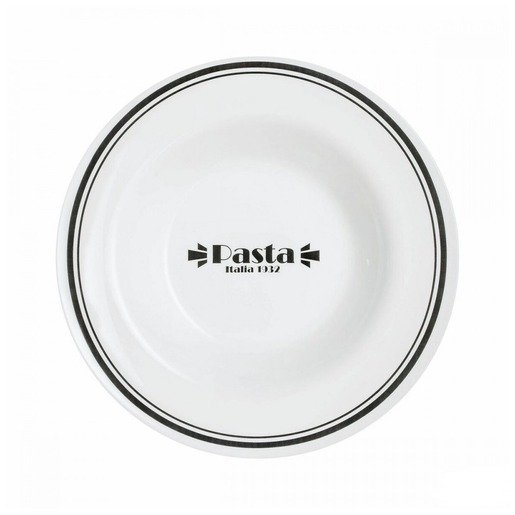 Стилната чиния за паста с диаметър 28.5 см е изработена от висококачествена стъклокерамика и съчетава елегантност с функционалност. Дизайнът ѝ включва черен кант и надпис "Pasta Italia 1932", който ѝ придава изискан винтидж характер. Идеална за сервиране на паста, ризото и други средиземноморски ястия, тази чиния е подходяща както за ежедневна употреба, така и за специални поводи.