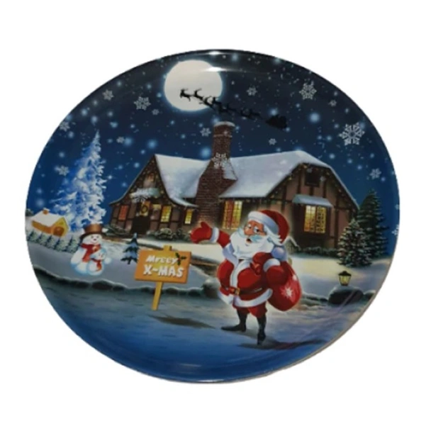 Коледен поднос с кръгла форма и с ефектна декорация с Дядо Коледа.
