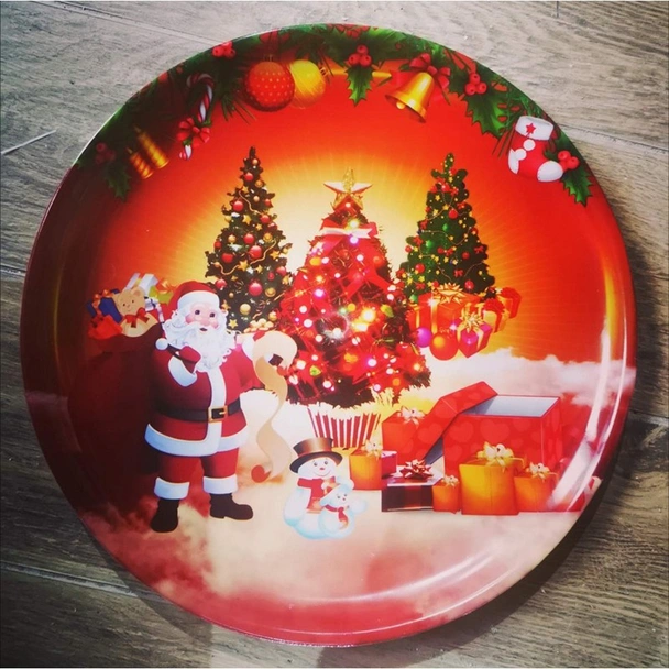 Коледен поднос с кръгла форма и с ефектна декорация с коледни мотиви.