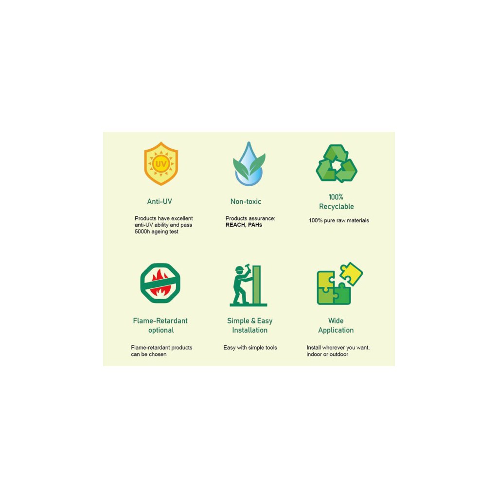 С естетична визия и гъста текстура, паното пресъздава усещането за истинска зеленина. Подходящо е както за интериорни, така и за екстериорни пространства.