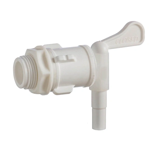 Здрава и надеждна канелка за бурета, бидони и бъчви ENO, изработена от качествен пластмасов материал в бял цвят.