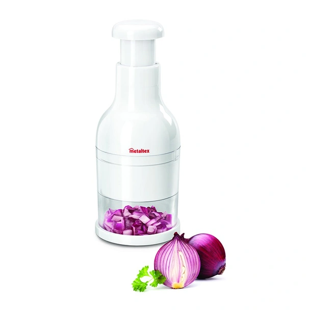 Ръчният чопър за зеленчуци Twist на световноизвестната марка Metaltex е иновативно решение за всеки, който желае да спести време и усилия при подготовката на храната. Проектиран за бързо и прецизно нарязване, този уред елиминира сълзите при рязане на лук и умората от монотонното кълцане с нож.