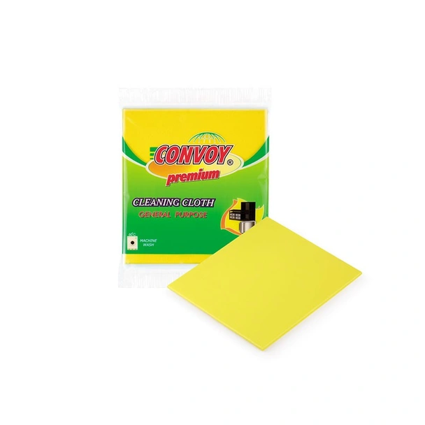 Изработена от прецизен бленд от вискоза и синтетични влакна, кърпата CONVOY PREMIUM притежава изключителни попивателни свойства. Вискозата осигурява мекота и способност за бързо подсушаване на мокри площи, докато синтетичният компонент добавя здравина и устойчивост на материята. Кърпата е идеално решение както за сухо забърсване на прах от мебели и техника, така и за основно почистване на кухненски плотове, маси и повърхности в банята. Яркият жълт цвят е класически избор, който позволява лесно визуално проследяване на нивото на замърсяване.