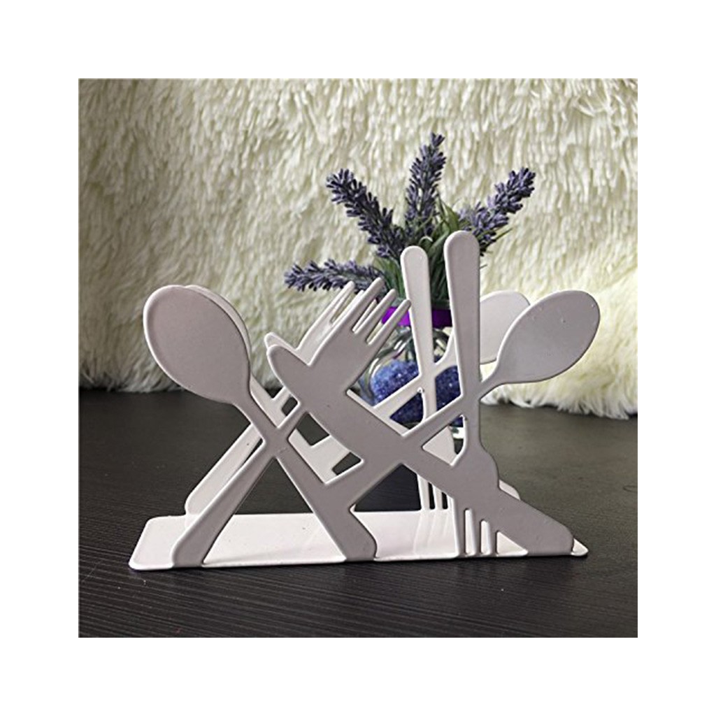Метален салфетник „Прибори“ – бял, 14x9x4 см
