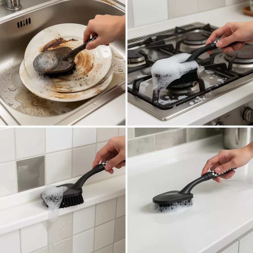 Мултифункционалният характер на този продукт го прави подходящ за широк спектър от задачи. В кухнята тя е идеална за почистване на работни плотове, мивки и дори за отстраняване на упорити остатъци от храна по големи тави или скари. Благодарение на твърдостта на косъма, четката лесно премахва засъхнали петна, без да поврежда повърхностите при правилна употреба.
