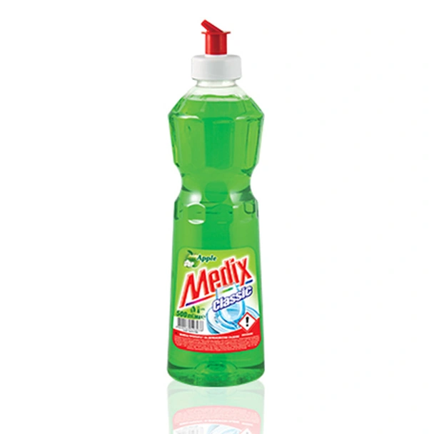 Ефикасен препарат за миене на съдове MEDIX със свеж аромат на ябълка.