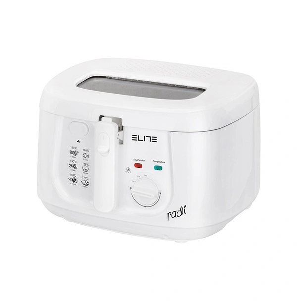 Фритюрник JR-2016-RADI ELITE с капацитет 2.5 л, мощност 1800 W и регулируем термостат със светлинен индикатор.