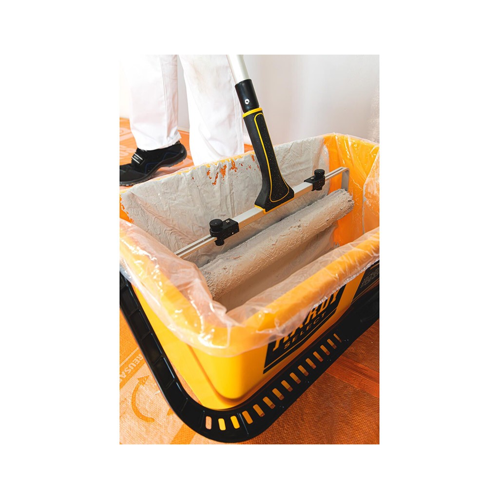 - Нанасяне с валяк: Големият отвор и формата на кофата са оптимизирани за лесно потапяне и зареждане на бояджийски валяци с голяма ширина. Това осигурява бързо и равномерно нанасяне на боята.