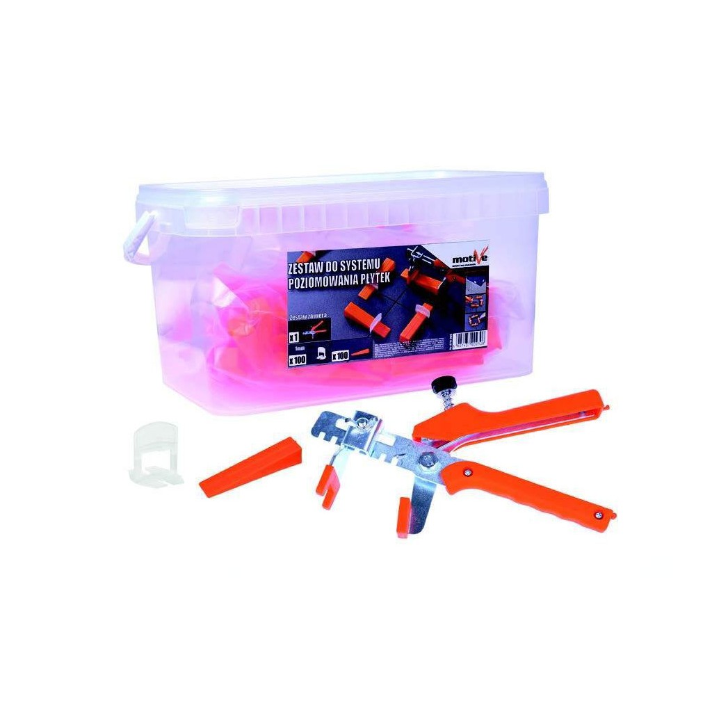 Комплектът за нивелиране на плочки MOTIVE е надеждно решение за всеки, който иска да постигне перфектно подравнени и гладки повърхности при полагането на плочки. Благодарение на клипсовете и клиновете, плочите се изравняват една спрямо друга без разминаване и без образуване на ръбове. Така резултатът е равен под или стена с професионален завършек дори при работа от начинаещи майстори.