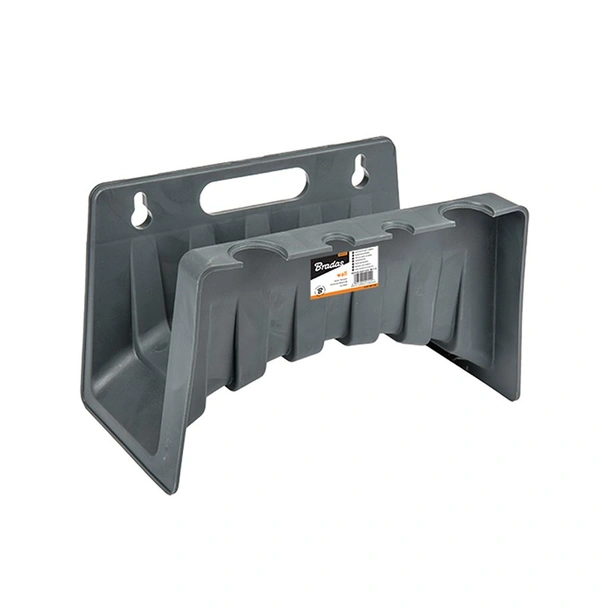 Стенна поставка за маркуч на марката BRADAS, изработена от качествен пластмасов материал, устойчив на корозия и UV лъчи.