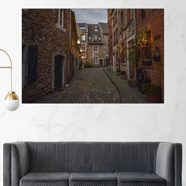 Декорация за стена (картина, пано) с мотив "Калдъръм в Столберг - картина пано за стена". Изработена от олекотено PVC с дебелина 5 мм или канава от 100% памук, опъната върху дървена подрамка с дебелина 5 см. Изображението се печата с висококачествен UV печат, което е гаранция за запазване на цветовете с години!