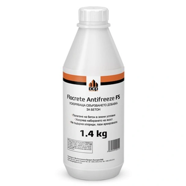 Flocrete Antifreeze FS е течна, многокомпонентна, химична добавка за бетон. Не съдържа хлориди. 1.4КГ