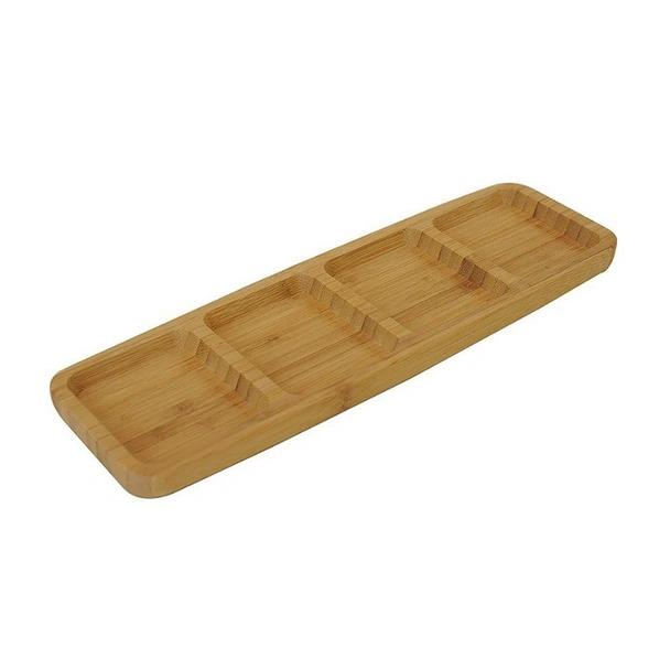 Плато за ордьоври с четири отделения, изработено от бамбук в естествен дървесен цвят.