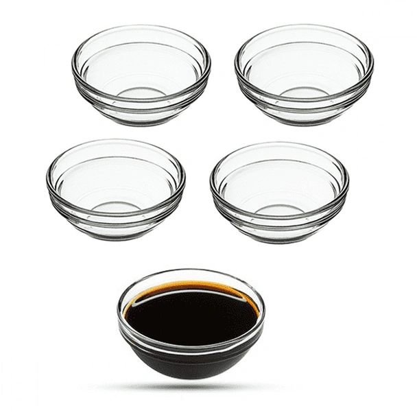 Стъклена купичка с класически дизайн, подходяща за сервиране на сос и дресинг.