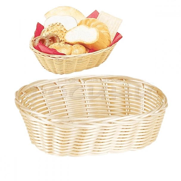 Въпреки че визуално наподобява естествена ракита, панерът е изработен от висококачествена пластмаса. Този избор на материал носи редица предимства за потребителя – съдът не се разплита, не абсорбира миризми и влага, и е напълно устойчив на деформации. Овалната форма и оптималните размери го правят идеален за сервиране на нарязан хляб, питки, закуски или пресни плодове. Отворената плетена структура позволява на тестените изделия да „дишат“, което предотвратява овлажняването им и ги запазва хрупкави за по-дълго време.