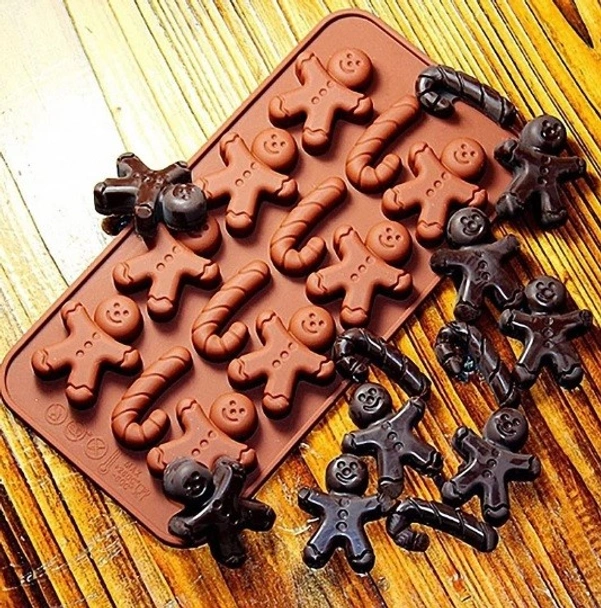 За приготвяне на шоколадови бонбони, разтопете шоколада на водна баня и напълнете гнездата догоре. Почукайте леко молда в плота, за да излязат въздушните мехурчета, и оставете да стегне в хладилник. Ако печете сладки, оставете ги да изстинат напълно в молда, преди да ги извадите – така ще гарантирате, че крайниците на човечетата и извивките на бастунчетата ще останат цели и красиви.